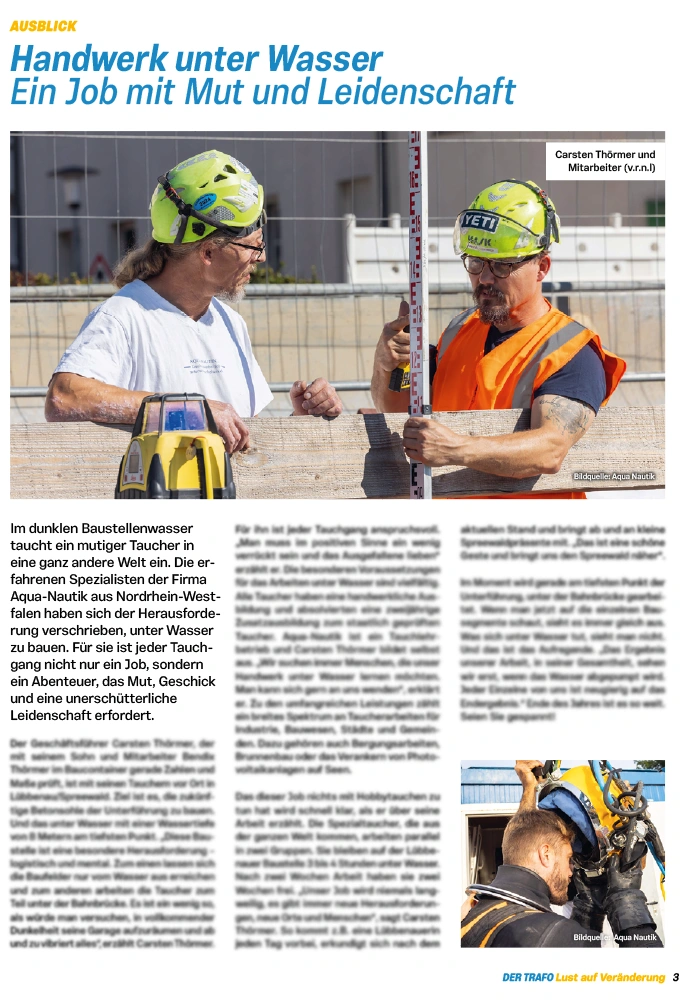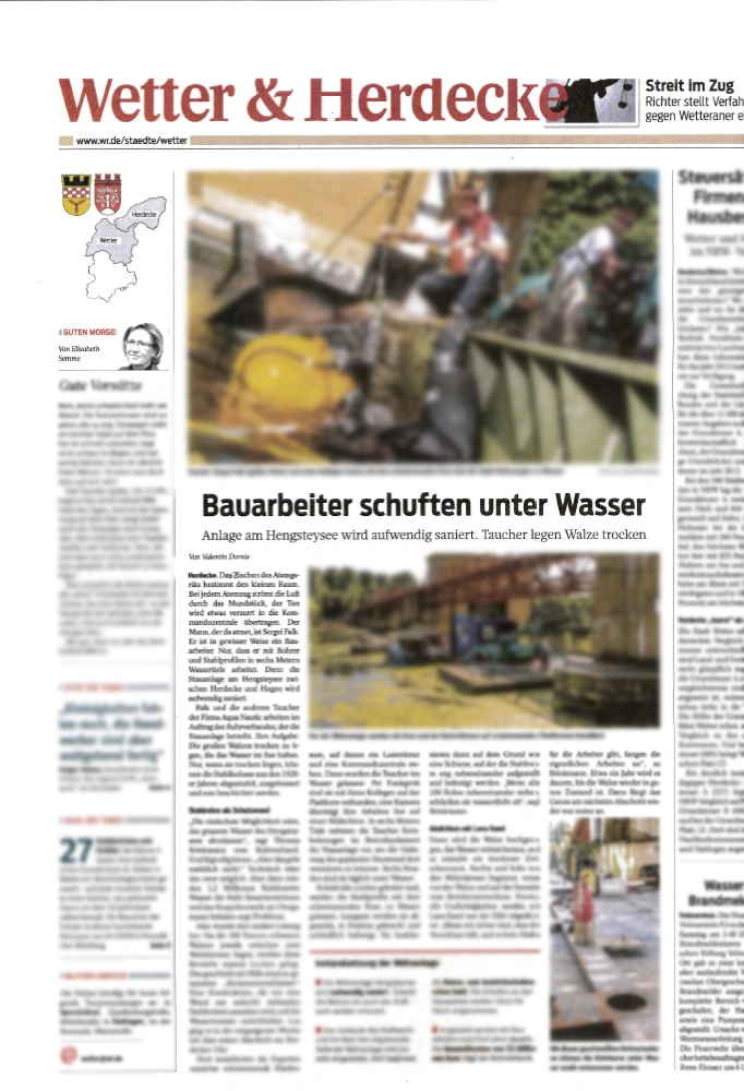 Die AQUA-NAUTIK GmbH zählt mit über 25 Jahren Erfahrung zu den führenden Unternehmen für Unterwasserarbeiten in Deutschland und ist für Sie europaweit tätig.