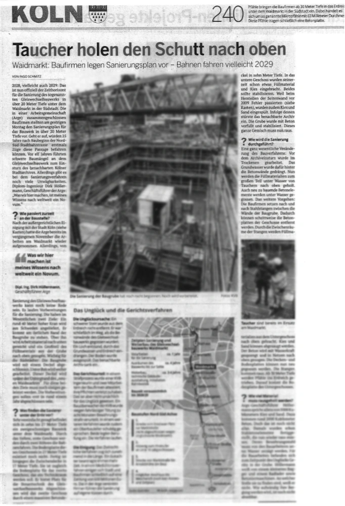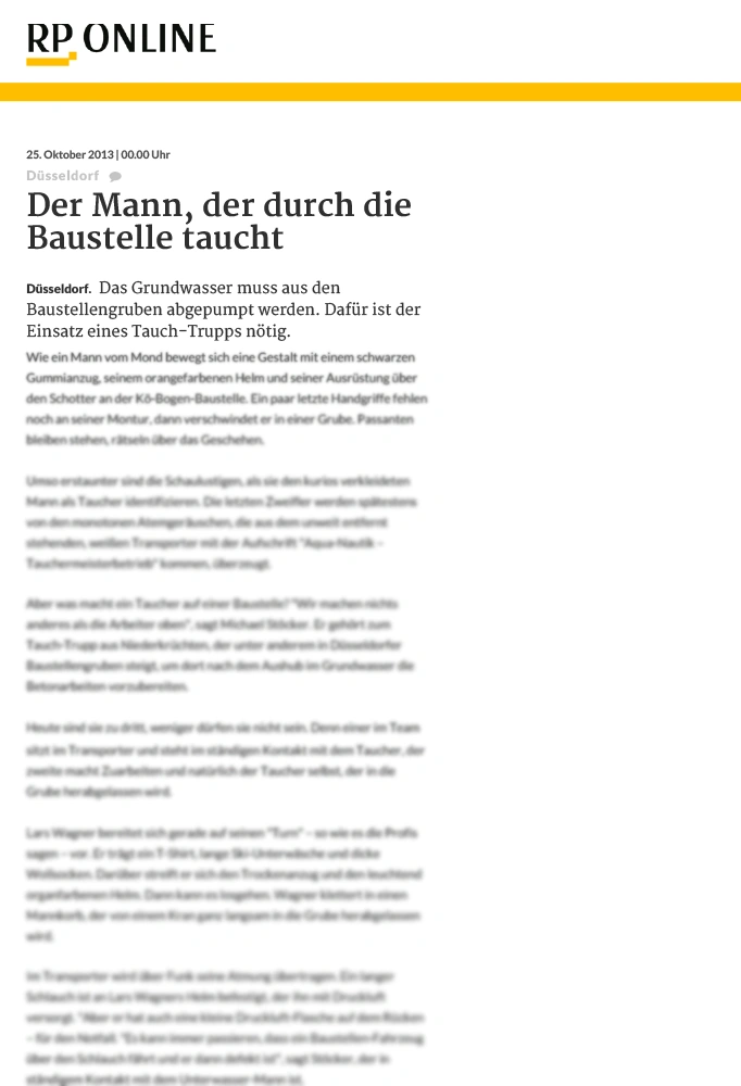 Aqua-Nautik-Taucher bereiten am Düsseldorfer Kö-Bogen im Grundwasser Betonarbeiten vor, bohren Ankerlöcher und sichern die Baugruben.
