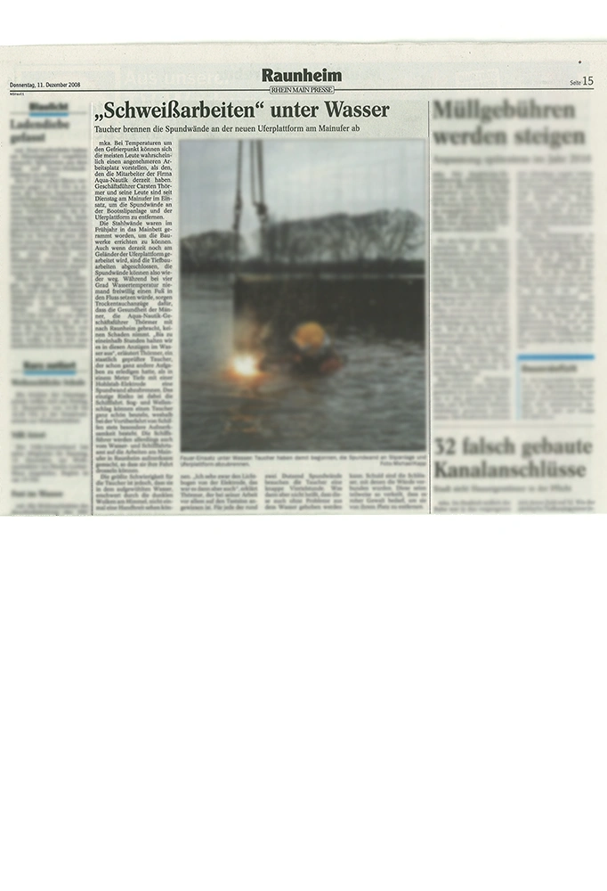 Erfahren Sie, wie Qualität unter Wasser aussieht: ausgewählte Kundenprojekte zeigen die Bandbreite unserer Leistungen – von Spezialtiefbau über Schweißarbeiten bis zu komplexen Sonarvermessungen.