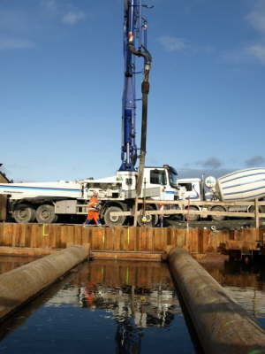 Im Zuge der Erweiterung der E6 zur Verkehrsentlastung der Innenstadt war der Bau eines Autotunnel notwendig zur Unterquerung der Hafenzufahrt zum Trondheimer Hafen. Der Tunnelbau ist in 5 Abschnitte unterteilt worden, wobei der tiefste Teil ca. 16,0m unter Bodenniveau lag. Die Wassertiefe lag in Abhängigkeit der Gezeiten bei ca. 14,0m. Insgesamt wurden hier bis Dezember 2007 etwa 7.200,00m³ Unterwasserbeton bis zu einem maximalen Gefälle von 6,8% eingebaut.