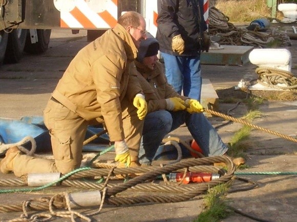 Das Schiff lag ca. 1,0 m im Schlamm gerade auf Grund des Hafenbeckens direkt an der Pier. Nachdem Hebegurte untergespült wurden und der Rumpf des Wracks soweit freigelegt war, wurde mit dem Heben des Havaristen begonnen.