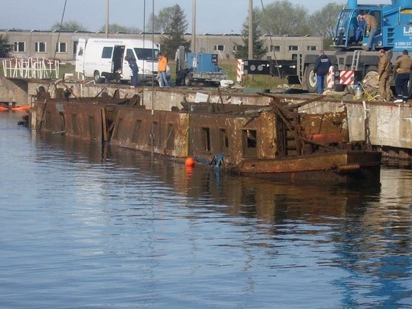 Im April 2007 wurden wir mit der Bergung eines 40,0 m langen und 5,0 m breiten ehemaligen Wohnschiffs im Peenemünder Hafen beauftragt. Das Wohnschiff lag seit ca. 18 Monaten auf Grund des Hafens. Daher handelte es sich hier eher um eine Wrackbeseitigung, als um eine Bergung im eigentlichen Sinne.