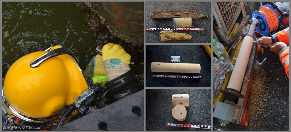 „Holz“- Kernbohrungen an einer Brücke in Lübeck.
