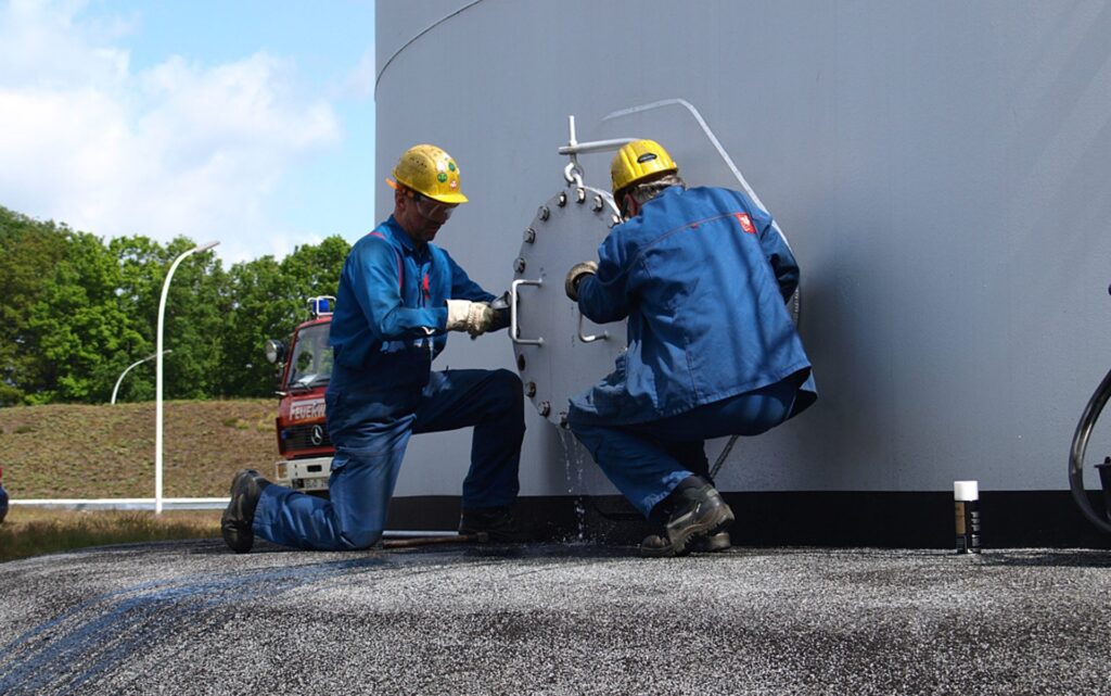 Montage des Rohrpackers im Löschwassertank eines Erdöltanklagers.