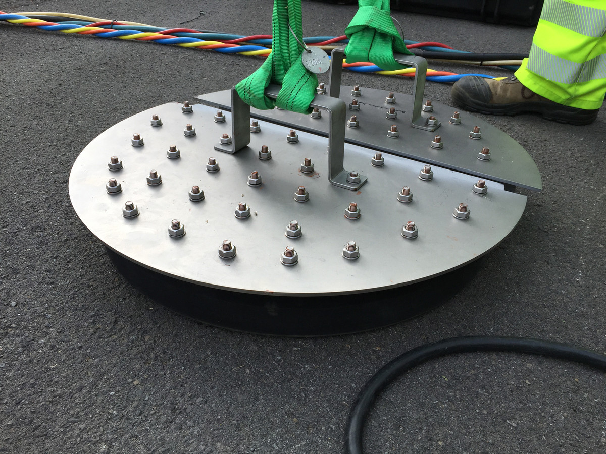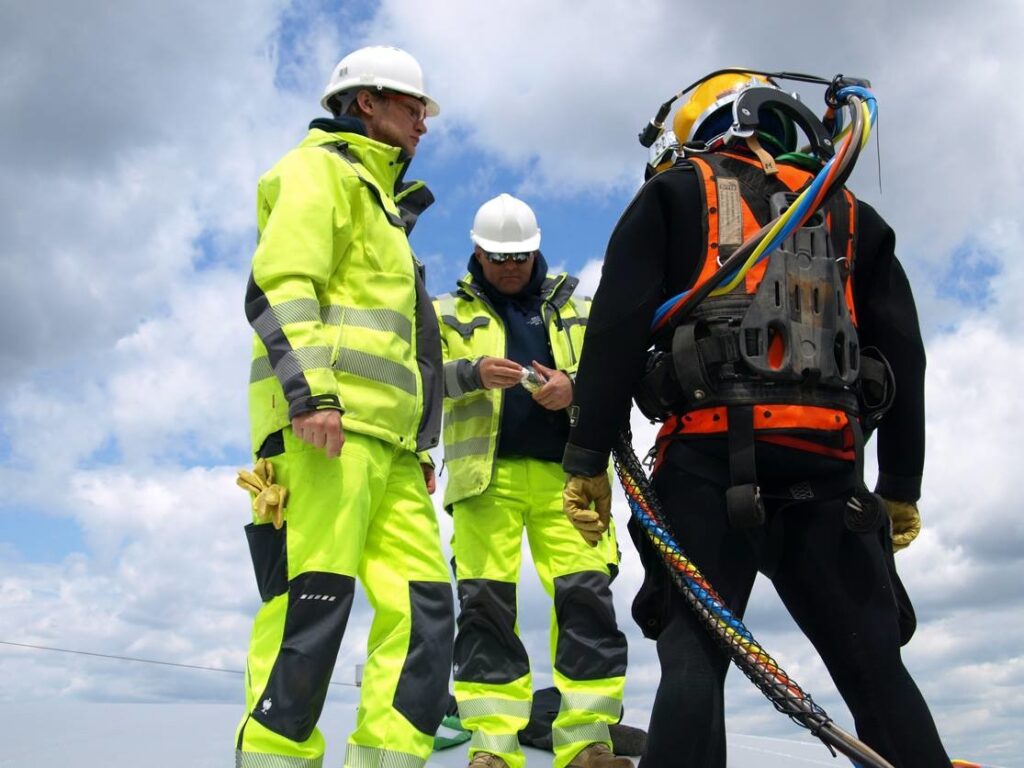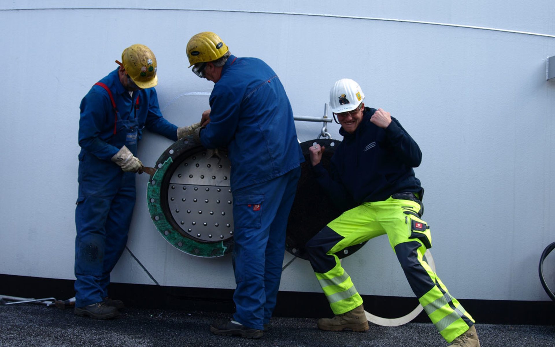 Der Taucher montierte zunächst den Rohrpacker an dem vorhandenen Mantelmannloch unterhalb der Wasserlinie im Inneren des Tanks. Der Rohrpacker diente der vorübergehenden Dichtung des Anschlusses. Ohne ihn wäre die darauf folgende Installation des Löschwasserentnahmebalkens im befüllten Tankzustand nicht möglich gewesen. Eine zusätzliche ROV-Befahrung klärte zwischenzeitlich den Zustand des Löschwassertanks von innen ab, bevor der Taucher in seinem letzten Tauchgang den Rohrpacker wieder demontieren konnte.