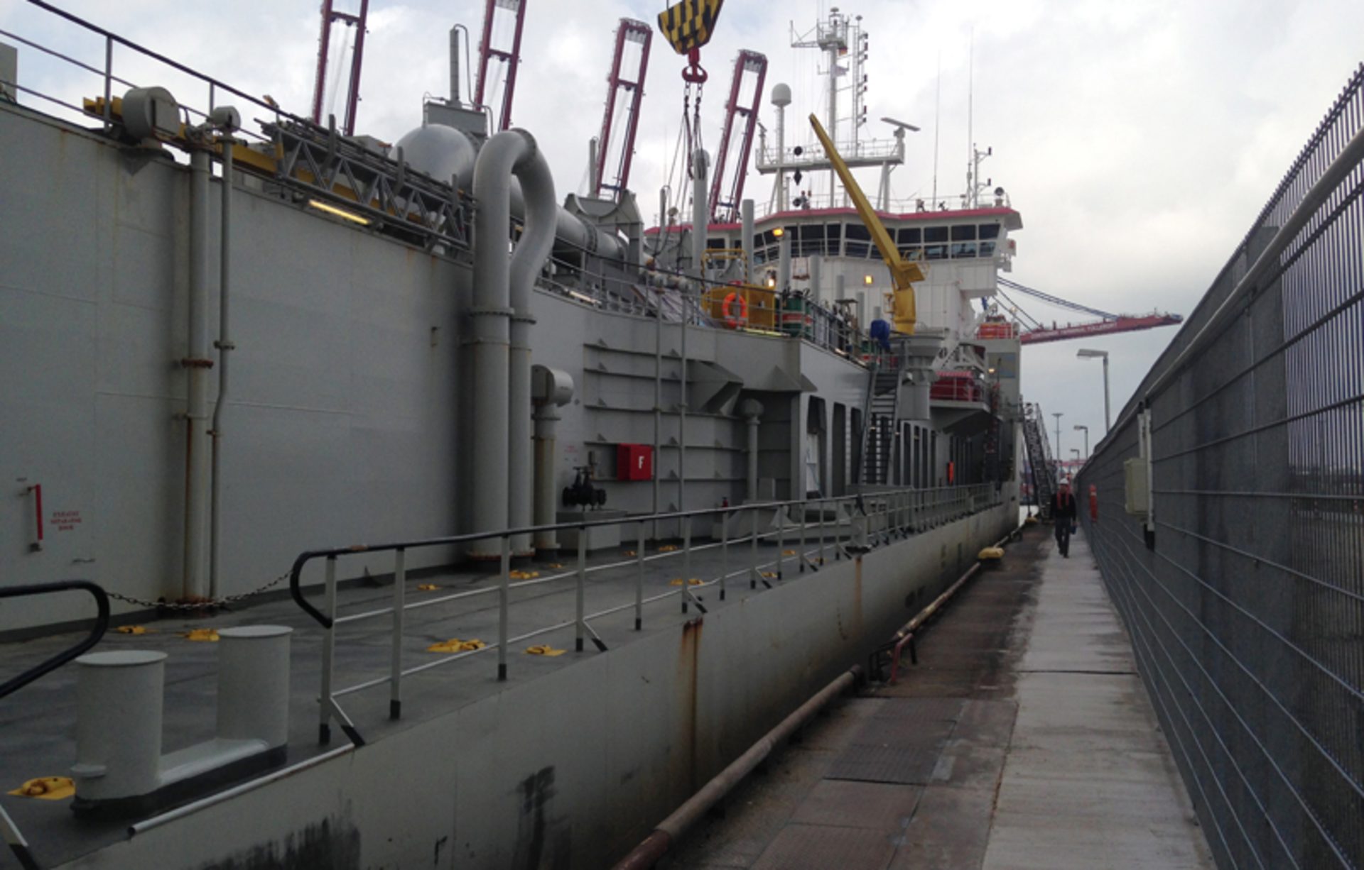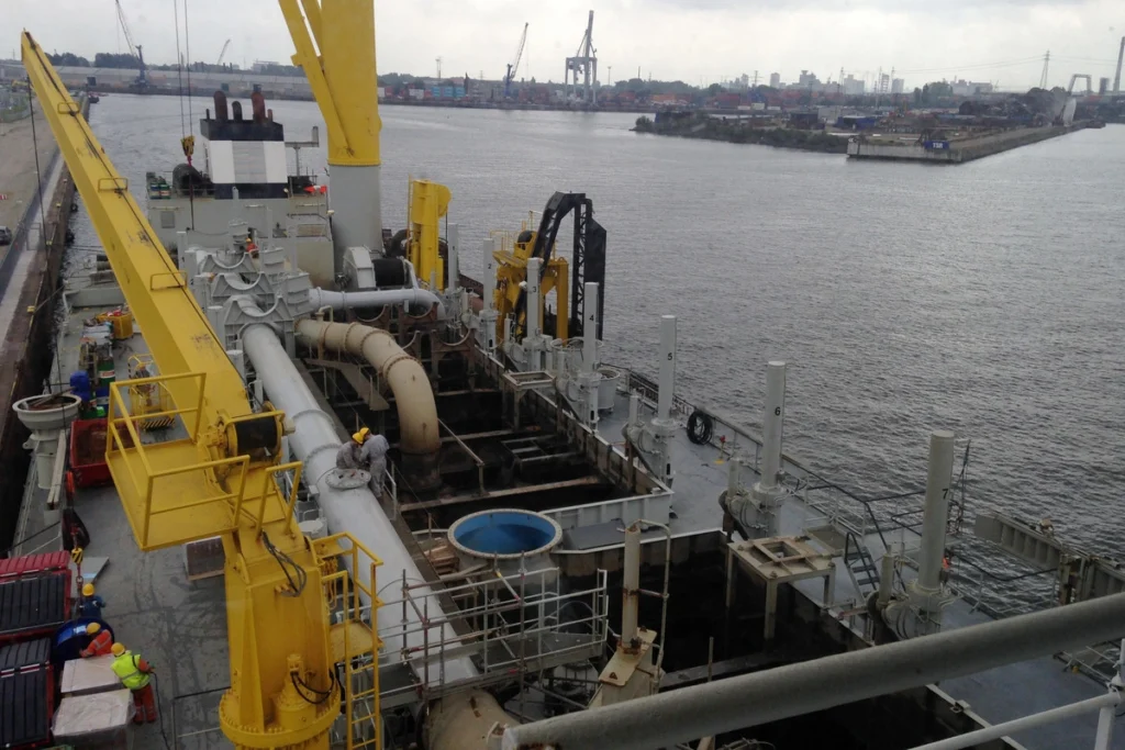 Inspektion eines Saugbaggers im Hamburger Hafen.