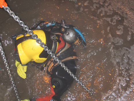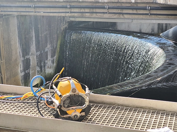 Unterwasserarbeiten in Kläranlagen laufen idealerweise im Betrieb: Funktionsprüfung, Bauteile instand setzen, Ergebnis dokumentieren – ohne Becken zu leeren und ohne Prozesse zu stoppen. Typische Einsätze betreffen Belüftung, Räumer, Rührwerke und Betonflächen bis hin zu Faultürmen. Sicherheit hat Priorität: Einsätze erfolgen nur nach Machbarkeitsprüfung und mit geeigneter Schutzausrüstung für kontaminierte Medien (z. B. AH5-Taucherhelm).